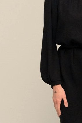 - Full length sleeve gathers on to a narrow cuff